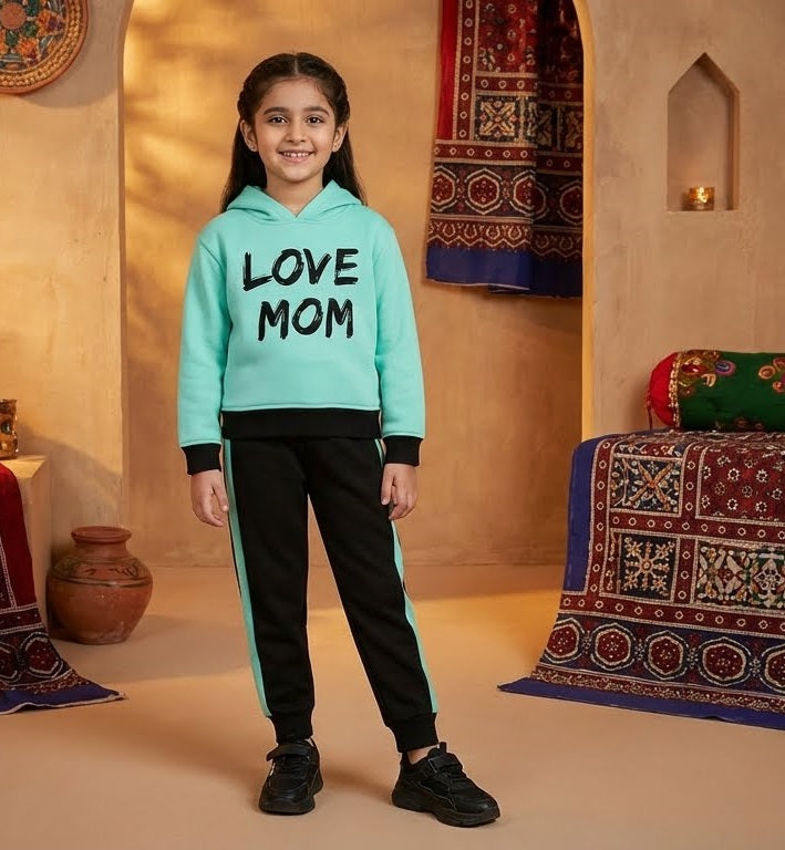 Colors: Ferozi trouser with a sleek shine effect, paired with a vibrant Ferozi Hoodie.